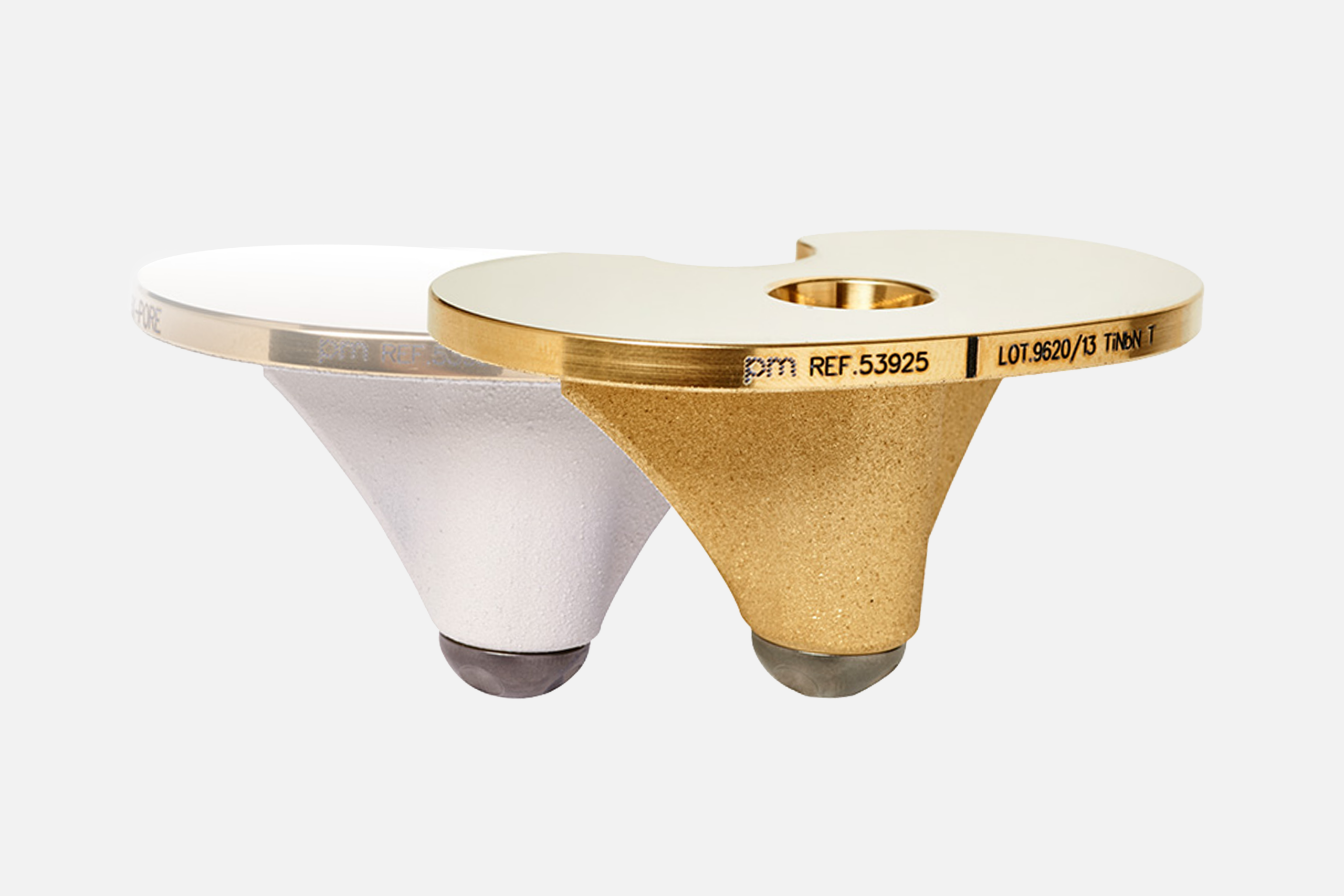 El componente tibial móvil está disponible en versión recubierta con HaX-Pore® no cementada y en versión cementada.