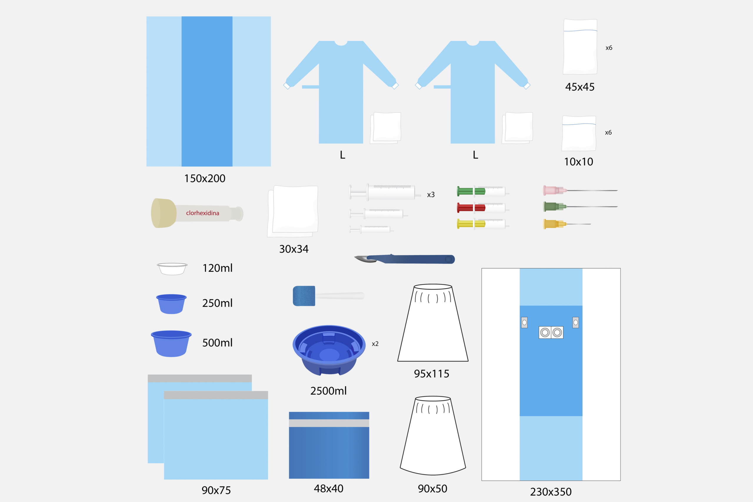 Pack quirúrgico destinado a procedimientos de hemodinámica, en el que se incluye todo el material de cobertura quirúrgica y fungible de un solo uso necesario para la intervención, presentado en un solo embalaje estéril en el orden de utilización.
