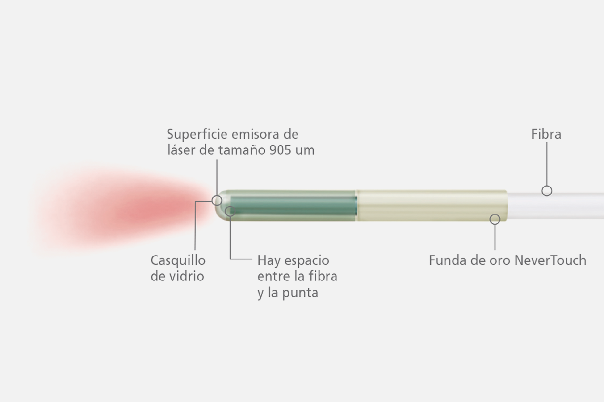 Diseñado para una aplicación de calor precisa y segura mediante la fibra láser NeverTouch Direct, que emite la energía en forma cónica, minimizando el riesgo de daño térmico en el tejido circundante.